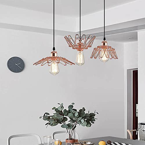 Mengjay E27 Vintage Industriale Sospensione Lampada Gabbia Lampada a Soffitto in Metallo,Creativo Lampadario a Soffitto Sospensione Geometrico Deformabile Regolabile Gabbia Pieghevole (Oro rosa)