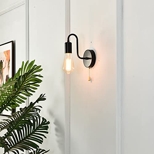 Lampada da parete con interruttore: lampada da parete in stile industriale con un interruttore a tirante sulla base, puoi usarla per accendere e spegnere facilmente la luce.