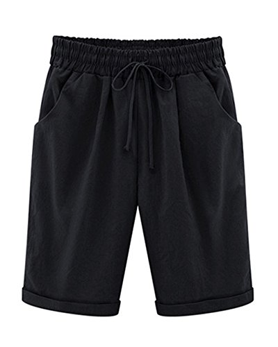 Mengmiao Donna Pantaloncini Bermuda Puro Colore Casual Comode Sciolto Taglie Forti Shorts Nero 6XL