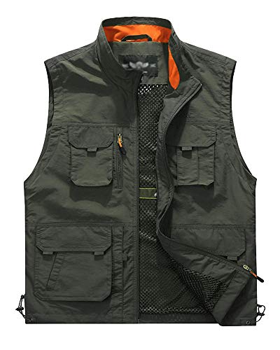 Mengmiao Uomo Gilet Senza Maniche Canottiera Tinta Unita Multi-Pocket Escursione Giacca Esercito Verde 5XL