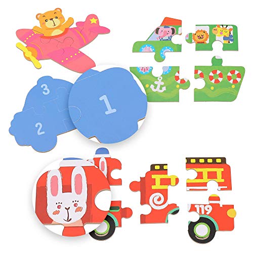MengTing My First puzzle di legno i Miei Veicoli Preferiti, 4 puzzle in una scatola Jouets Éducatif pour Enfants(Trasporti)
