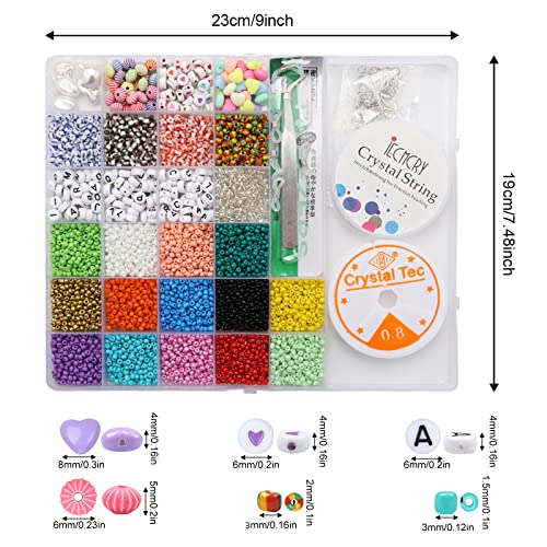 Mengxin 7500 Pezzi 15 Colori 3mm Perline per Braccialetti Perline Vetro per Bigiotteria Fai da te Perline Colorate Lettere con Elastic Thread Kit Creare Gioielli per Collane