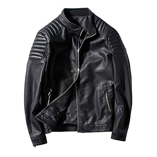 Mengyu Giacca da Motociclista da Uomo in Pelle Pu Morbida Nero 3XL
