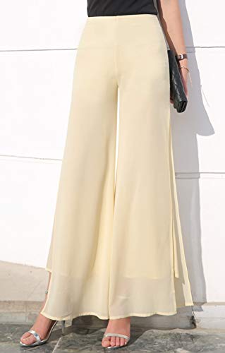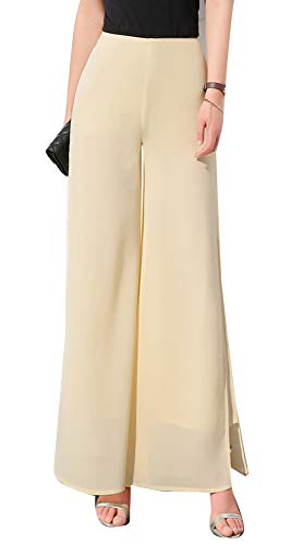 Mengyu Pantaloni in Chiffon Pantaloni A Vita Alta di Grandi Dimensioni Pantaloni Larghi in Mesh Dividere I Pantaloni Gamba Larga delle Donne Albicocca 3XL