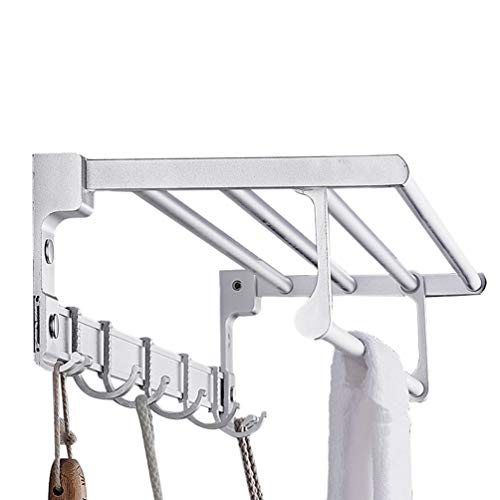 Mensola porta asciugamani pieghevole multifunzionale, portasciugamani pieghevole e 5 ganci per asciugamani, costruiti per resistere a graffi, corrosioni e ossidazioni quotidiani.