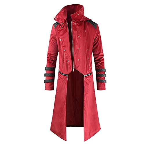 MENICY Steampunk, costume da uomo con cappuccio, a maniche lunghe, giacca calda invernale, antivento, protezione dal freddo, Colore: rosso, M