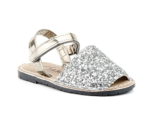 Menorca - Sandali Avarcas Menorquin dal look glamour - Taglie da 28 a 35, Argento (Argento Plata), 30 EU