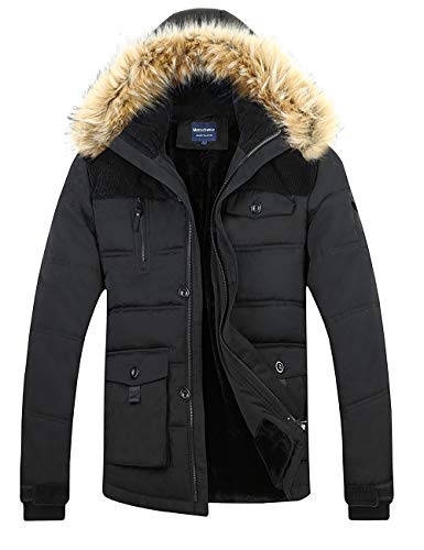 Menschwear Uomo Jacket Down Puffer Giacca Foderato di Pile Incappucciato Piumino Collare di Pelliccia Addensato (3XL,Blu)