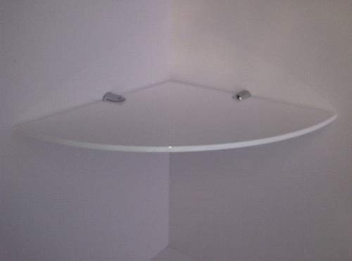 Mensola angolare piccola in acrilico bianco con staffe di fissaggio cromate, 180 mm