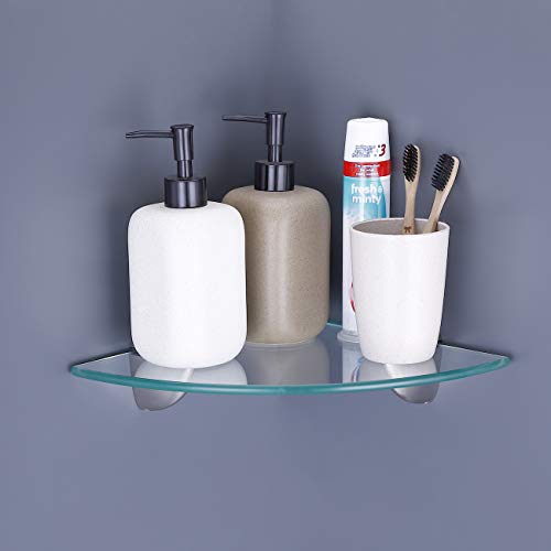 KES Mensola angolare in vetro spesso 8 mm Mensola doccia in vetro temperato Organizzatore di stoccaggio triangolare montato a parete con staffa finitura spazzolata, BGS3100-2