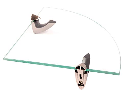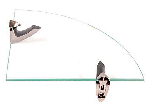 Confezione da 3 mensole angolari in vetro temperato trasparente con staffe cromate, 25 x 25 cm, per bagno angolare, spessore 6 mm