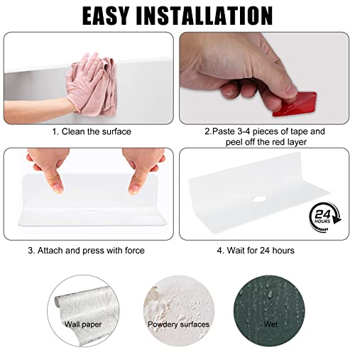 Facile da Installare - Il mensola da muro bianco Installare con tamponi adesivi biadesivi 3M, senza foratura, senza danneggiare la parete. La superficie è anche facile da pulire, idrorepellente e durevole.
