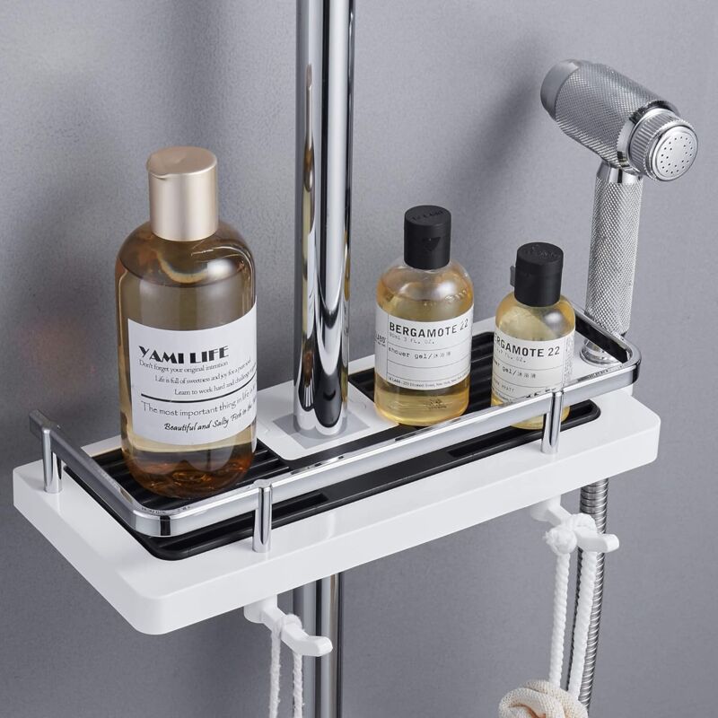 < /p> FACILE DA SCARICO: Il design del foro di scarico impedisce che l'acqua rimanga sullo scaffale dopo la doccia, rendendo il bagno asciutto e ordinato. Il