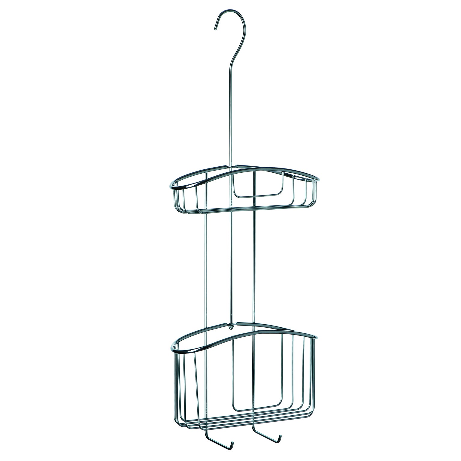 Dimensioni 22,5 x 8,5 x H 60 cm, completa di ganci porta spugna e accappatoi. Dotato di 2 cestini che possono contenere shampo, bagnoschiuma, spugna e qualsiasi altro prodotto e di un gancio inferiore per appendere lavette, spugne, spazzole, ecc. Articolo che non necessita di fissaggio a muro. Dotato di un gancio superiore che permette di appenderlo al rubinetto del box doccia. Articolo capiente e molto raffinato