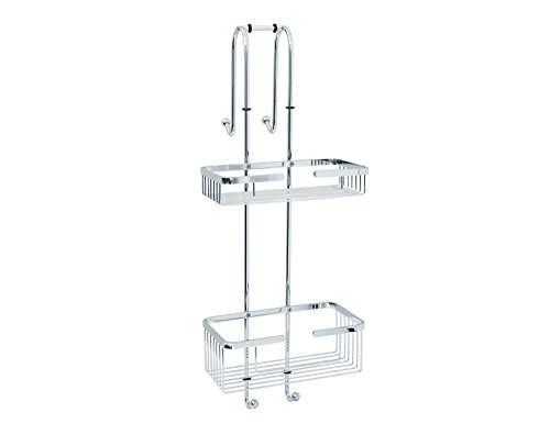 Mensola per doccia con due ripiani e 4 Ganci, Pensile in acciaio inox