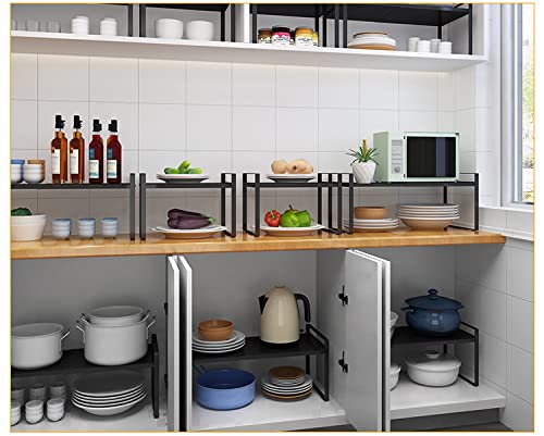 【Uso multiplo】 Questo prodotto può essere utilizzato in vari luoghi della casa, inclusi armadi, dispensa, armadietti, cucine, bagni, camere da letto e qualsiasi superficie del tavolo. Puoi usare lo scaffale come organizer per armadietti per posizionare piatti, ciotole, snack, libri, riviste, ecc.