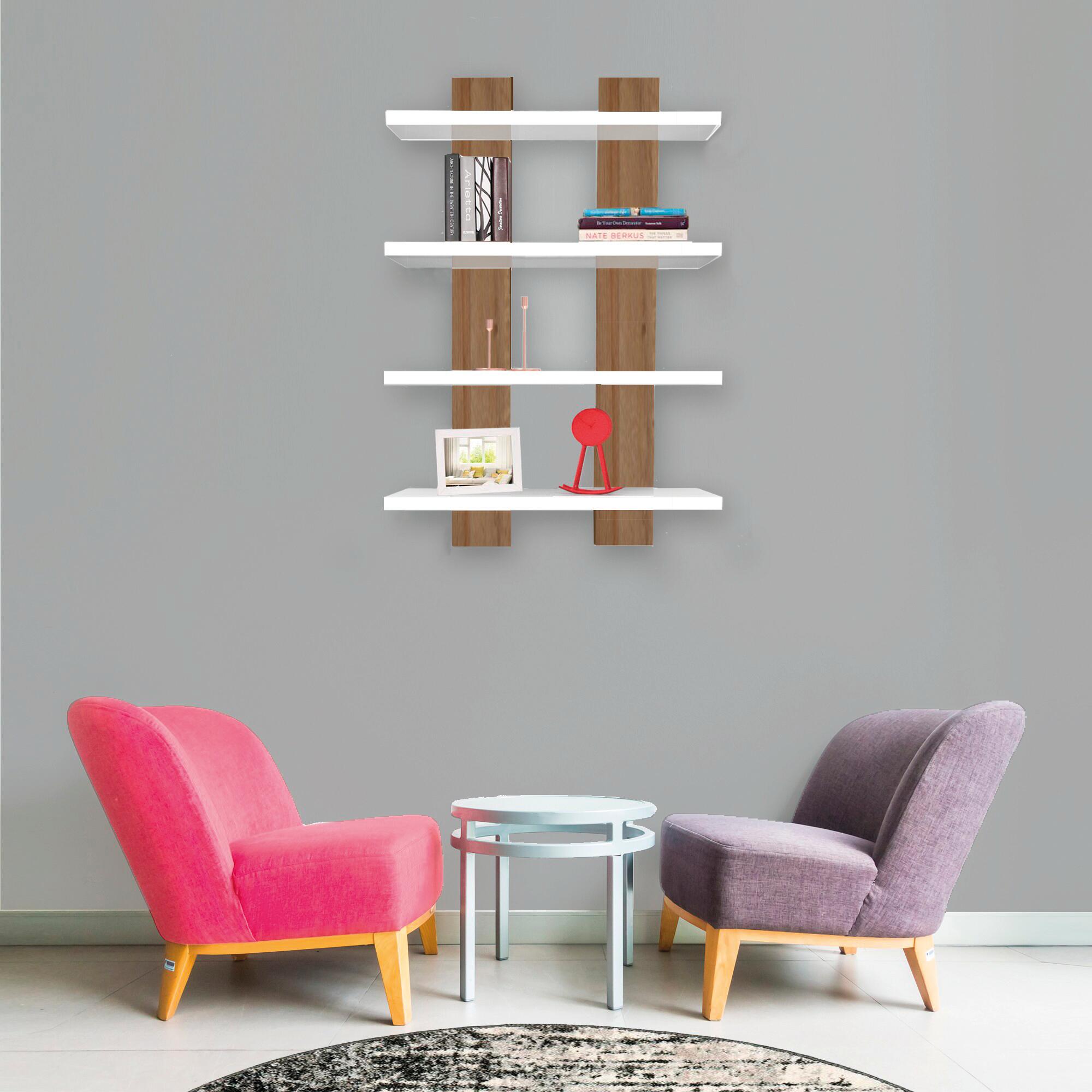 Mensola moderna e funzionale, è la soluzione perfetta per mostrare i libri e gli oggetti. Grazie al suo design è ideale per la zona giorno, la zona notte della casa e l'ufficio. Kit di montaggio incluso, facile da montare. Mod. Nergis, Col. Bianco, Rovere