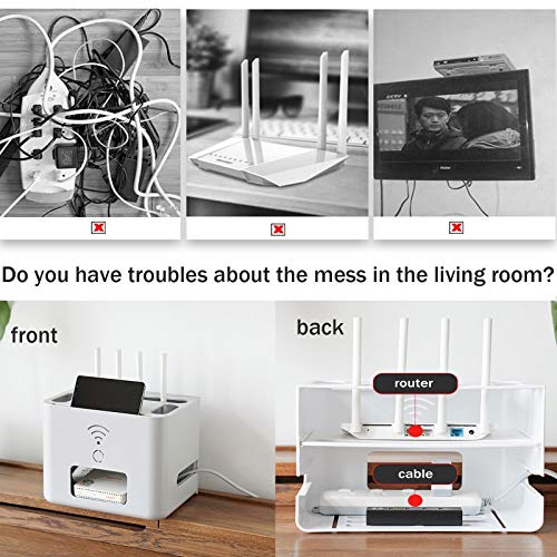 Mensola Router WiFi Mobile, Scatola Cavi per Nascondere i Vari Cavi Che Collegano TV, Decoder, Router etc, Scatole Decorative per Soggiorno, Casa White