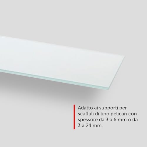 FÁCIL DA INSTALLARE: questa mensola in vetro temperato è facile da installare. A tale scopo è possibile utilizzare le staffe a muro per mensole in vetro pelican con uno spessore da 3 a 6 mm o da 3 a 24 mm REI. Assicurarsi di posizionare correttamente le staffe in modo parallelo e perpendicolare alla parete.