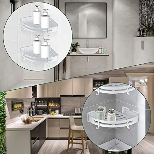 Mensole Bagno JiGiU 2 Pezzi Mensola da Doccia da Angolo Mensola Doccia Senza Foratura Alluminio Spaziale Portasapone Doccia Autoadesivo con 4 Ganci Doppio Uso Portaoggetti Doccia da Muro
