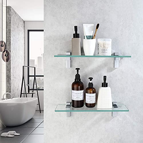 KES Mensole Bagno, Mensola Doccia 40CM Vetro Temperato con Supporto Cromo Lucido 2 Pacchi, BGS3201S40-P2