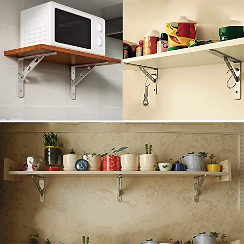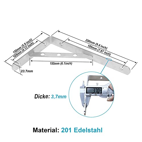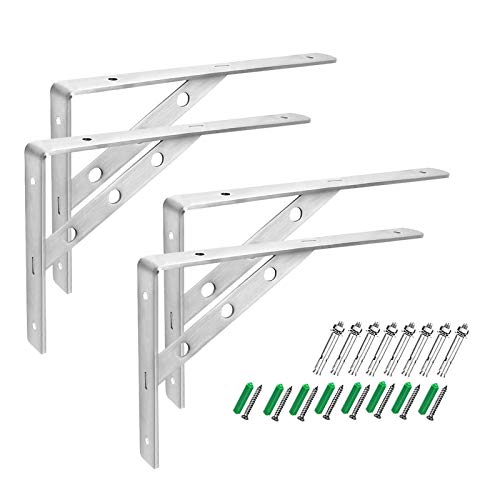 Set di 4 mensole in metallo per carichi pesanti, mensole angolari color argento, in acciaio inox 201, portata: 60 kg, triangolari, per fai da te, per libri, dimensioni: 25 × 15 × 2,5 × 0,4 cm