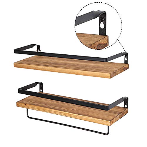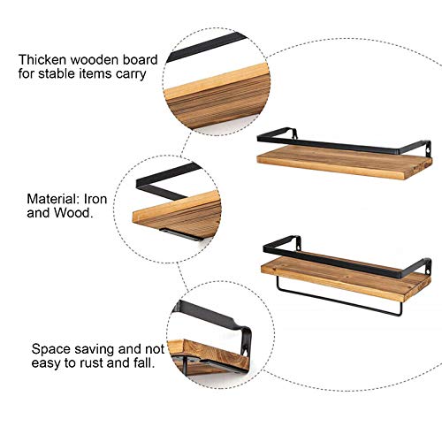 Scaffale sospeso a parete: gli scaffali sono realizzati in legno di alta qualità, durevole, forte capacità di carico. Struttura in metallo con protezioni e portasciugamani per evitare che gli oggetti cadano da grandi altezze. (Il portasciugamani separato può essere installato sotto la mensola sospesa o a parete) si adatta al vostro soggiorno, bagno, camera da letto, cucina, ufficio e altro ancora.