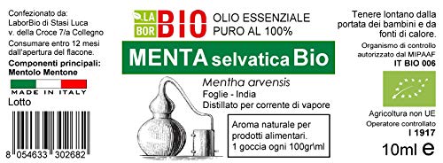 Menta Selvatica Bio Olio essenziale 100% Puro 10 ml - Uso interno Terapeutico Alimentare Diffusori Aromaterapia Cosmetica Cucina - Laborbio