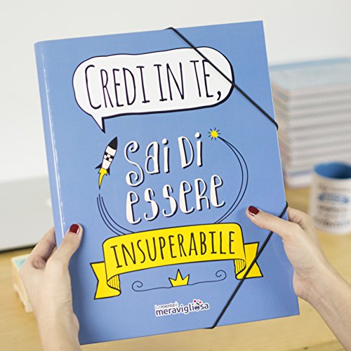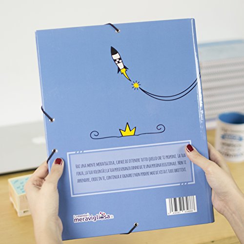 LA MENTE ES MARAVILLOSA - Cartella Classifica con Alette, Elastici e Divisori, Porta Documenti con Frase e Disegno Divertente per Scuola, Università o Lavoro (Design Credi in Te)