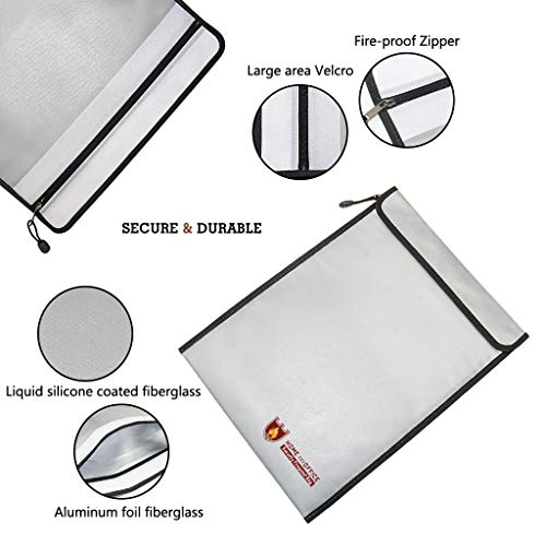 Mentin Sacchetto per documenti ignifugo, sacchetto di documenti resistente al fuoco alto, 28 x 38 cm