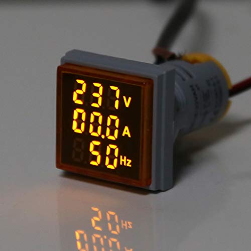 Mentin 3 in 1 22mm AC Voltmetro Amperometro Hz Corrente Frequenzimetro Indicatore Tensione Digitale Amp Hz Led Lampada Quadrata Segnale Luce con CT (Giallo)