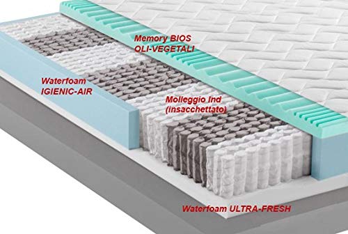 OFFERTA LIMITATA - 1000 micro molle circa (matrimoniale) indipendenti e 5 cm di Memory BIOS agli Oli Vegetali, nove zone di portanza differenziata.;