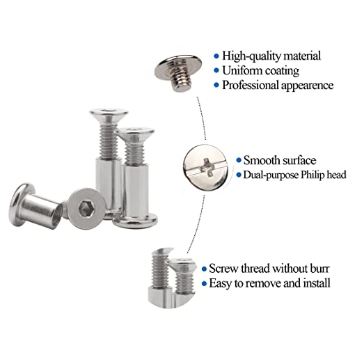 MenYiYDS-30set di viti sepolte Rivetto a vite da 5mm Kit di viti sepolte Chicago 3misure di viti sepolte M5 tenditore a vite,adatto per menu di nastro di carta per libri in pelle Artigianato fai da te