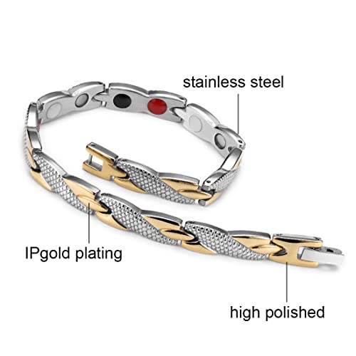 MenYiYDS Bracciale magnetico in acciaio al titanio Bracciale in titanio per uomo, Bracciale magnetico per uomo (oro e argento)