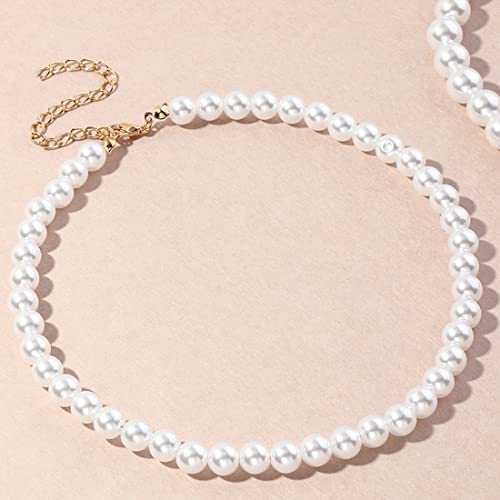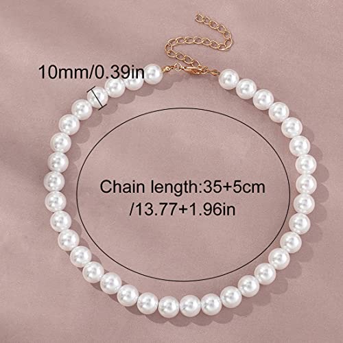 MenYiYDS Collana di perle Collana da donna Accessori da sposa a strati corti Collana di perle finte in stile retrò elegante Accessori per costumi Bianco, 10 mm