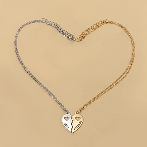 MenYiYDS 2 Pezzi BFF Collane Collana Amicizia Best Friends Collana Cuore per Ragazze Regali di Compleanno Ciondolo Catena Regali (Oro e Argento)