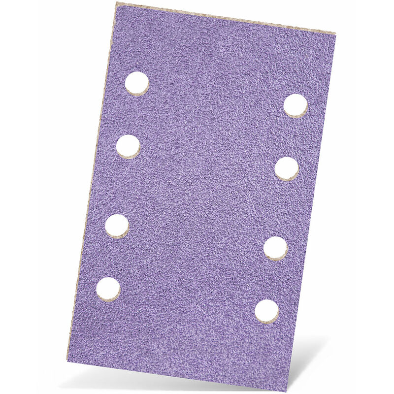 Carte abrasive velcrate MENZER, G240 Informazioni sul Prodotto Autoaffilante Riduzione dell'intasamento grazie al rivestimento antiaderente Risultato di levigatura omogeneo Asportazione di materiale elevata e costante Lunga durata di utilizzo Dati tecnici Supporto: Carta al lattice Dimensioni: 133 x 80 mm Tipo di abrasivo: Fogli abrasivi Attacco: Sistema a strappo Grana classificazione: Fine Foratura: 8 fori Tipo di grana: Miscela di ceramica Applicazione Legno: 8/10 Gesso, stucco: 10/10 Plastica: 10/10 Colore, vernice: 10/10 Legenda: 10 - molto adatto, 0 - non adatto Descrizione del Prodotto MENZER Purple HD - Abrasivo ceramico ad alte prestazioni per le opere di finitura interna Purple HD MENZER è un abrasivo ceramico ad alte prestazioni sviluppato per soddisfare i requisiti più elevati nelle opere di finitura interna. Il mix di granuli ceramici autoaffilanti e corindone semi-friabile garantisce un'eccellente qualità della superficie ed elevate prestazioni di asportazione. Purple HD
