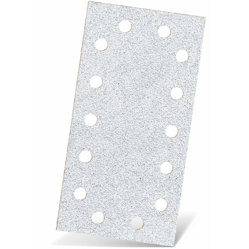 Carte abrasive velcrate MENZER, G320 Informazioni sul Prodotto Elevate prestazioni di asportazione Elevata qualità della superficie Riduzione dell'intasamento del disco abrasivo Dati tecnici Supporto: Carta UltraFlex Dimensioni: 230 x 115 mm Tipo di abrasivo: Fogli abrasivi Attacco: Sistema a strappo Grana classificazione: Fine Foratura: 14 fori Tipo di grana: Corindone normale Applicazione Legno: 7/10 Gesso, stucco: 8/10 Colore, vernice: 8/10 Legenda: 10 - molto adatto, 0 - non adatto Descrizione del Prodotto MENZER White - Il prodotto classico per le finiture interne. Eccezionale su colori, vernici e stucchi MENZER White è lo specialista comprovato per le finiture interne ed è perfetto per la lavorazione di gesso e stucchi ma anche di colori e vernici. Lo speciale rivestimento CoolTec di MENZER impedisce in modo efficace che l'abrasivo possa intasarsi prematuramente. Pertanto, White MENZER ha una lunga durata su superfici termoplastiche come materiali plastici e vernici. White