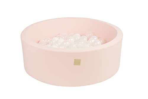 MEOWBABY Piscina di Palline 90x30cm/150 Palline ∅ 7CM Piscina di Palline Colorate per Bambini Tondo Fabbricato in EU Rosa Chiaro: Bianco/Trasparente/Bianco Perla