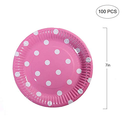 Meowoo Piatti Carta, Piatti Compleanno Bambini,Piatti Carta Festa, Natale,Matrimonio, Compleanno,Partito,Caramella,Torta, Frutta,Alta qualità e Protezione ambientale-18 cm,Puntino(Rosa 100 PCS)