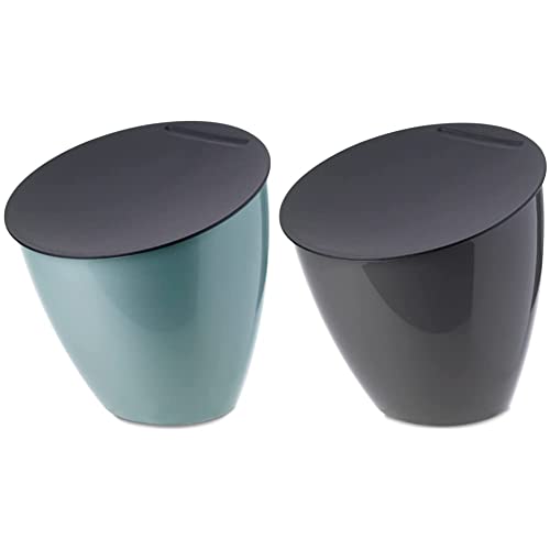 Prodotto 1: DESIGN: i cestini Calypso sono disponibili in diversi colori e hanno il coperchio nero. I cestini hanno un design rotondo e inclinato da una parte per un effetto divertente.