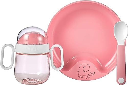 Mepal - Set di stoviglie per bambini Mio - Deep pink - 3 pezzi, con bicchiere antigoccia, piatto per bambini e cucchiaio per bambini - ideale come regalo di nascita - lavabile in lavastoviglie