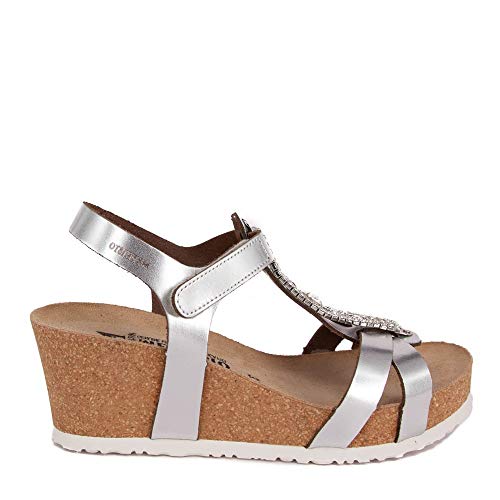 Mephisto Lio Spark Sandalo Gioiello Laminato Argento Zeppa 6 cm (Numeric_39)