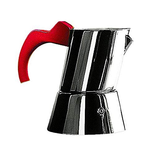 MEPRA Angelo Mangiarotti Caffettiera Espresso, 4/6 Tazze, Acciaio Inossidabile 18/10, Rosso