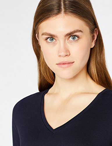 MERAKI 2 Pack V Neck Long Sleeve, T-shirt Donna, Blu (Night Sky/white), X-Large