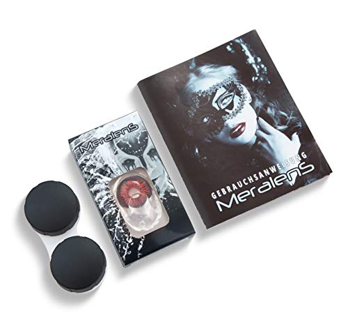 Meralens Lenti a Contatto Colorate Lupo Rossa rosse Red Demon Lenses - con porta lenti a contatto - ideali per Manga Anime Halloween Demone Vampiro - Durata 1 Anno - 1 Coppia senza correzione