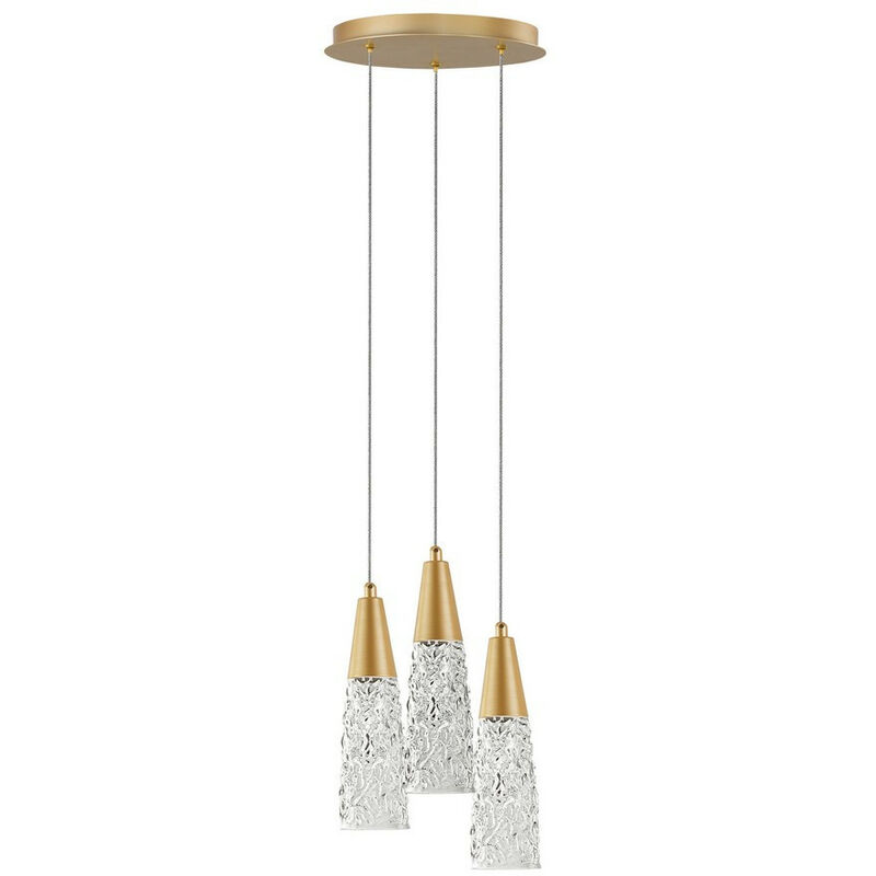 Merano Connecticut Plafoniera a Sospensione a 3 Grappoli Luminosi Acciaio Oro Spazzolato, Vetro Strutturato Trasparente LED G9 | Finitura: oro | Materiale: vetro, acciaio | Classificazione IP: IP20 | Altezza: 180 cm | Lunghezza: 25 cm | Tipo di lampada: G9 | N. di lampade: 3 | Lampadina inclusa: No | Dimmerabile: No | Peso: 2,6 kg | Potenza (massima): 3x5W
