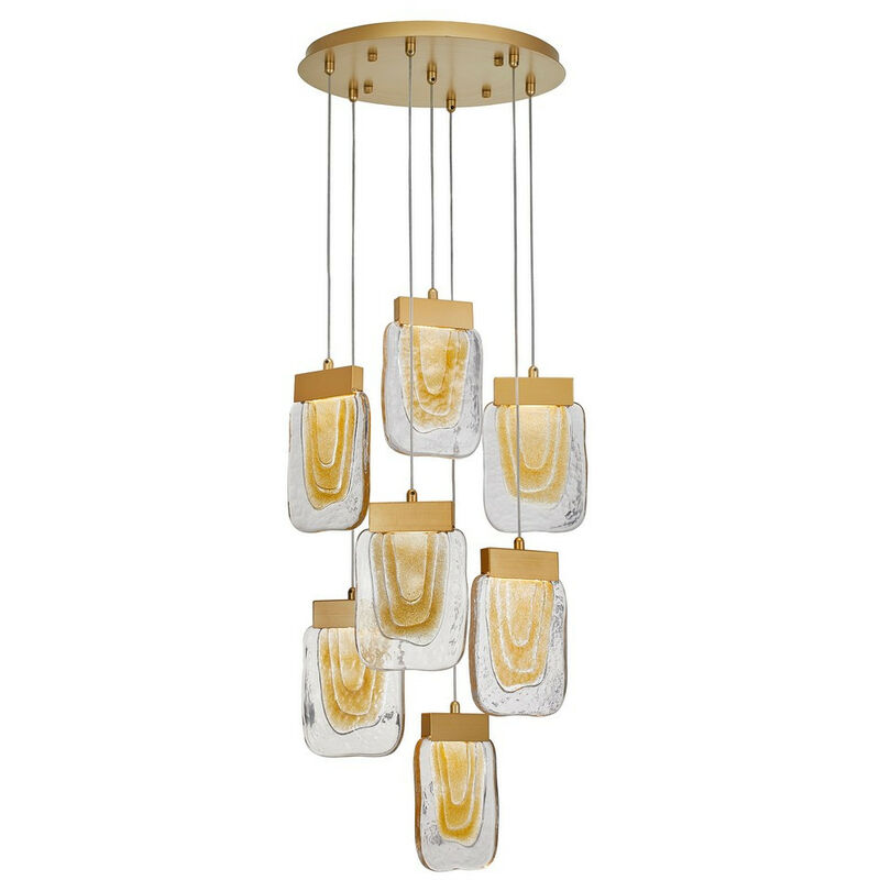 Merano Eugene Plafoniera a Sospensione a 7 Luci a Grappolo Lucido Acciaio Oro Spazzolato Ambra, Vetro Oro LED 7x4W 637Lm 3000K | Finitura: oro | Materiale: vetro, acciaio | Classificazione IP: IP20 | Altezza: 180 cm | Lunghezza: 48 cm | Tipo di lampada: LED integrato | N. di lampade: 7 | Lampadina inclusa: Sì | Dimmerabile: No | Kelvin: 3000 K | Lumen: 826lm | Peso: 11 kg | Potenza (massima): 28W