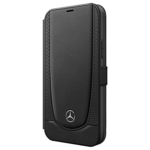 Mercedes-Benz Custodia a libro con porta carte compatibile iPhone 12, iPhone 12 Pro pelle nera
