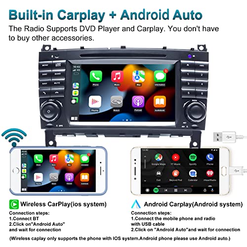 Per Mercedes Benz W203 W209 Classe C C180 C200 CLK200 Android 12 Octa Core 4 GB RAM + 64 GB Rom 7" Autoradio Stereo Sistema GPS Auto Lettore multimediale Car Auto Riproduzione TPMS OBD 4G WiFi Dab
